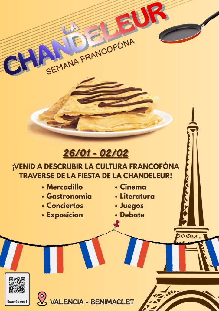 La Chandeleur es un proyecto cultural que tiene como propósito desarrollar una semana francófona en Benimaclet. Una propuesta que quiere resaltar el valor de la cultura francófona en nuestra sociedad.
